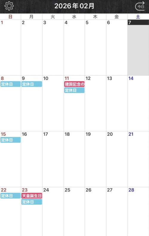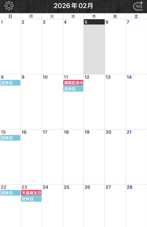2026年2月営業日のお知らせです