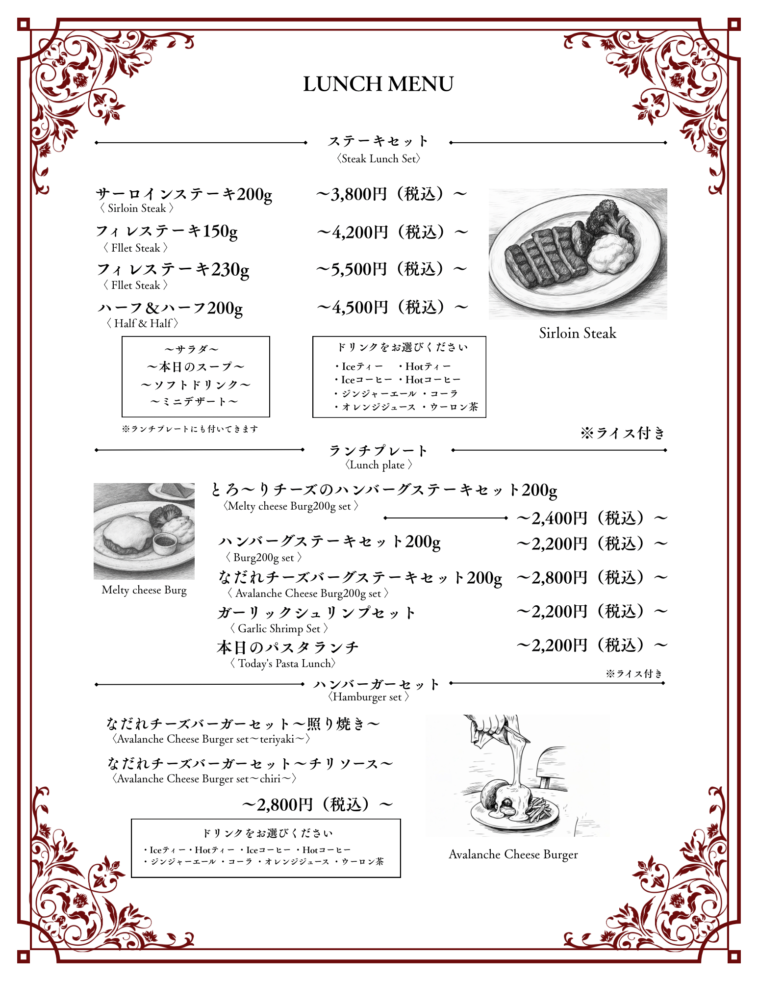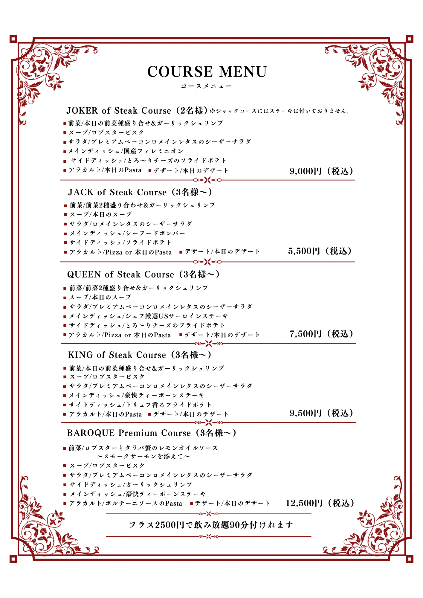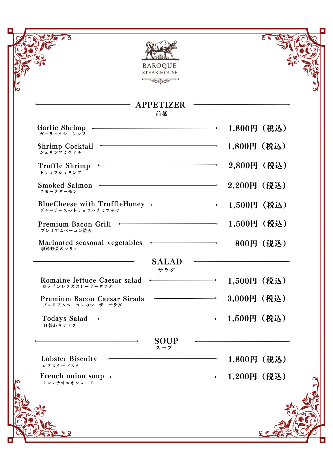 GRAND MENU | 苫小牧バロックステーキハウス(BAROQUE STEAK HOUSE)